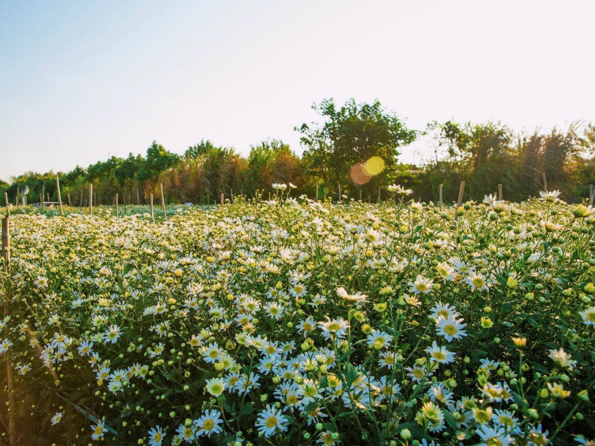 Cuối tháng 11, khi những cơn gió từ phương Bắc bắt đầu len lén kéo về, bầu trời nằng nặng, mặt đất rưng rưng, cỏ cây như muốn co mình, khép mắt cùng sương nắng... thì cúc họa mi bung nở. Ban đầu mới chỉ chúm chím những nụ bé bỏng xinh xinh, mỗi ngày hé thêm một chút, rồi một ngày kia, xòe cánh, bật nhụy, cả cánh đồng vỡ òa trong bản du ca màu trắng.