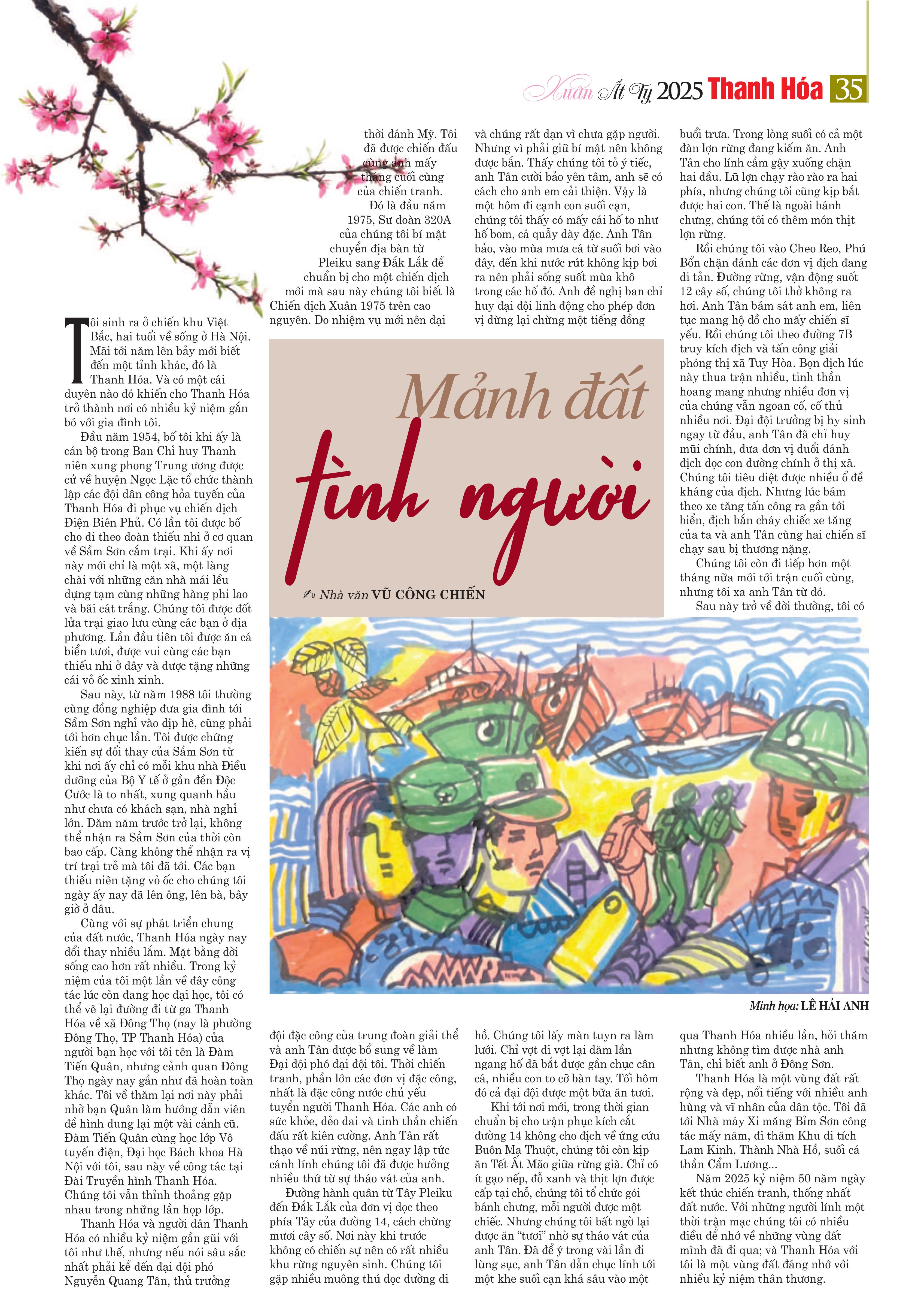 Theo dòng chảy của mùa xuân, bung nở của sắc đào thắm, mai vàng, dòng người sắm tết, du xuân, rất nhiều câu chuyện mang theo nguồn cảm hứng cũng bừng nở trên các trang Báo Thanh Hóa Xuân Ất Tỵ 2025, được thể hiện bằng bút pháp nhẹ nhàng, sâu lắng, giúp bạn đọc có dịp để ngoái nhìn và chiêm nghiệm, như: