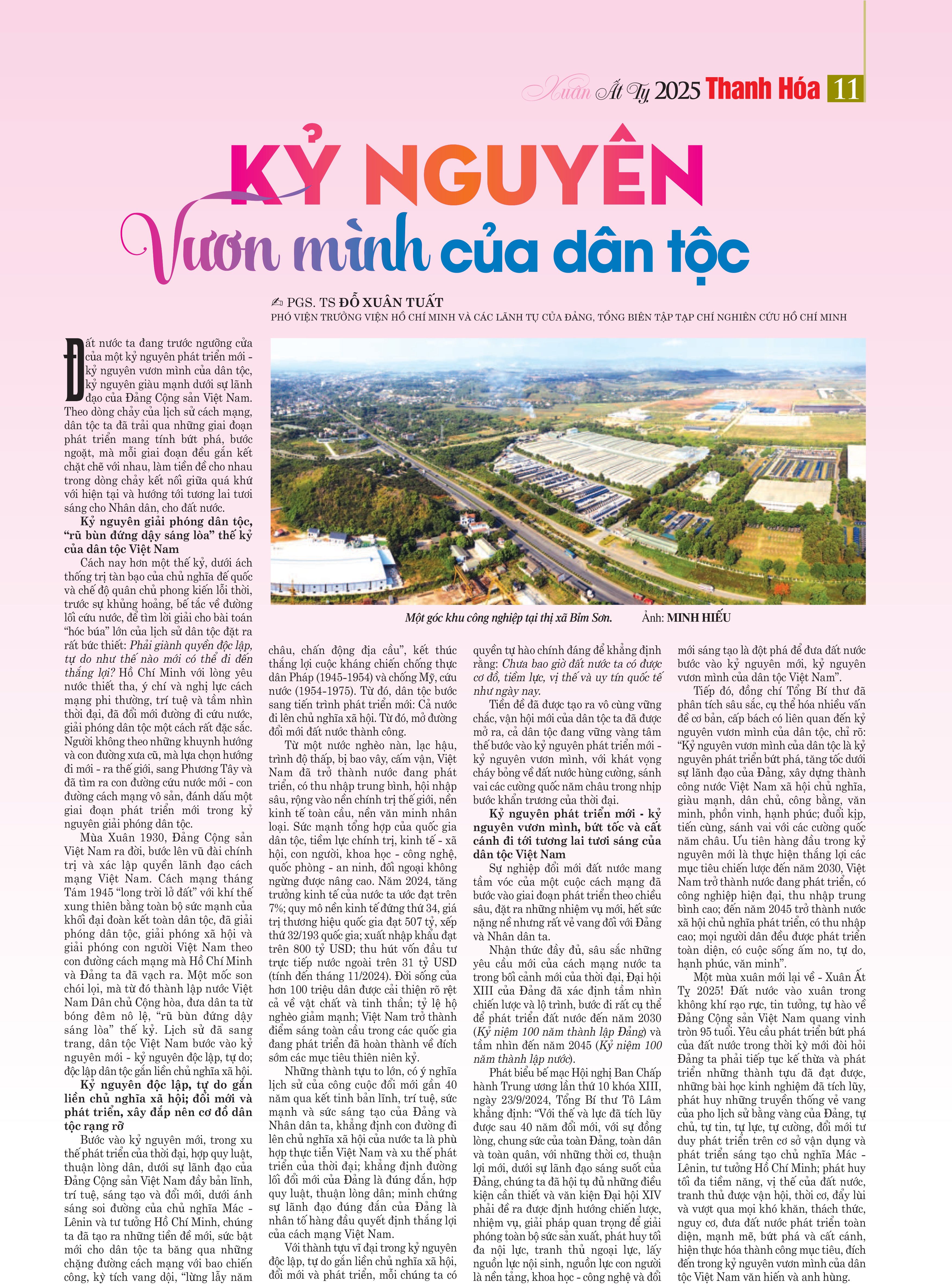 PGS, TS Đỗ Xuân Tuất (Phó Viện trưởng Viện Hồ Chí Minh và các lãnh tụ của Đảng) với bài viết “Kỷ nguyên vươn mình của dân tộc”;